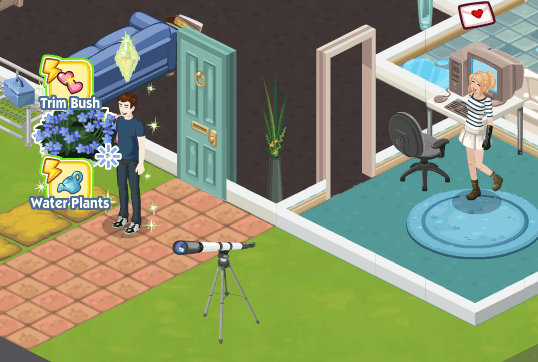 The Sims Social lets you simulate life through your sim character, but through a censored, puritanical lens that wants to giggle at sex and nudity without actually showing anything explicit. It’s like a fourteen year old boy who refers to sex as “doing it” whilst giggling at the very thought. So get ready for lots of innuendo in this game as characters strip to their underwear, jump under the covers giggling, and proceed to “woo-hoo”. Yes, sex is called woo-hoo in the Sims games, and although your sim will need to urinate constantly, he or she will never poo. Defecation is unheard of in the world of the Sims. As is being naked to have a shower or bath as your sim changes into swimwear to do so. The developers are trying to have their cake and eat it too. They want to be naughty and risqué but they err hard on the side of caution so as not to offend anyone prudish. It’s like an old British carry on film. Any minute now I expect a sim that looks like Benny Hill to come rushing through my house chasing a scantily, clad girl.